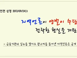 | [성명] 지역언론이 앵벌이 수단으로 전락한 현실을 개탄한다! (20120924) (2) | 2012.09.24 |