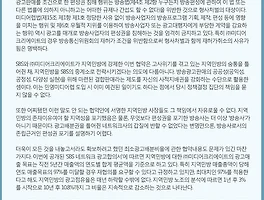 | [성명] 방송통신위원회는 지역민방의 편성권을 침해한 SBS등에 대한 법적조치와 함께 미디어크리에이트에 대한 재허가를 즉각 취소하라! (20150821) (0) | 2015.08.21 |