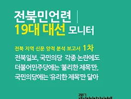 편파 유리 보도의 경우는 총 16건이 집계됐다. 후보자들이 공식 선거 기간 중 전북에 찾아 발언한 내용을 긍정적으로 인용한 경우가 대부분이어서 편파 유리가 높계 집계된 것으로 파악된다.