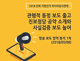 2018 전북 지방선거 미디어감시연대는 선거 시기에 한해 신문과 방송보도, 통신사의 선거 보도를 대상으로 나쁜 보도를 선정합니다. 아래는 2018년 5월 나쁜 선거보도 선정사유입니다.