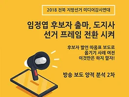 | 2018전북지방선거미디어감시연대 방송 2차 보고서) 후보자 발언 따옴표 보도로 옮기기 사례 여전, 이것만은 하지 말자! (0) | 2018.05.14 |