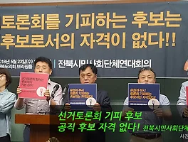 | 전북시민사회단체연대회의) 토론회를 기피하는 후보는 공직 후보로서의 자격이 없다!! (20180523) (0) | 2018.05.23 |