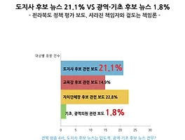 이 외에 동부산악권을 중심으로 강세를 보이고 있는 무소속 후보자들에 대한 보도 건수가 늘어나고 있는 추세이며 자유한국당의 도지사 후보와 비례 후보가 확정되면서 관련 보도 건수도 증가한 것이 확인되고 있다.
