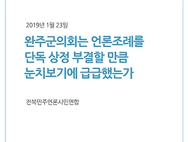 | [성명] 완주군의회는 언론조례를 단독 상정 부결할 만큼 눈치보기에 급급했는가 (20190123) (0) | 2019.01.23 |