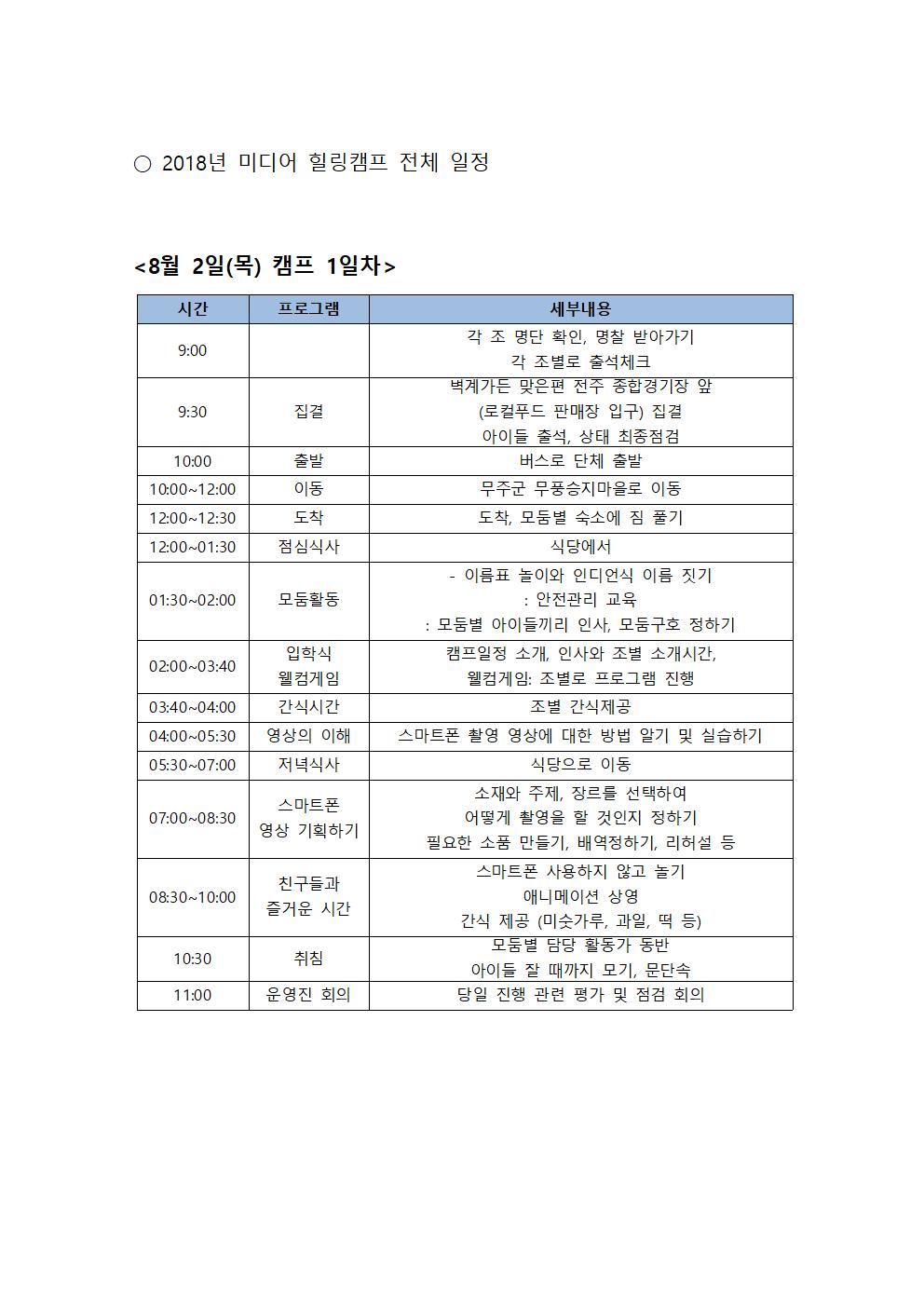 7월 31일(수) 12시~12시 30분에 다시 출발 장소인 전주 종합경기장 앞으로 도착할 예정입니다. 캠프장에서 출발할 때 문자로 미리 연락드리겠습니다.