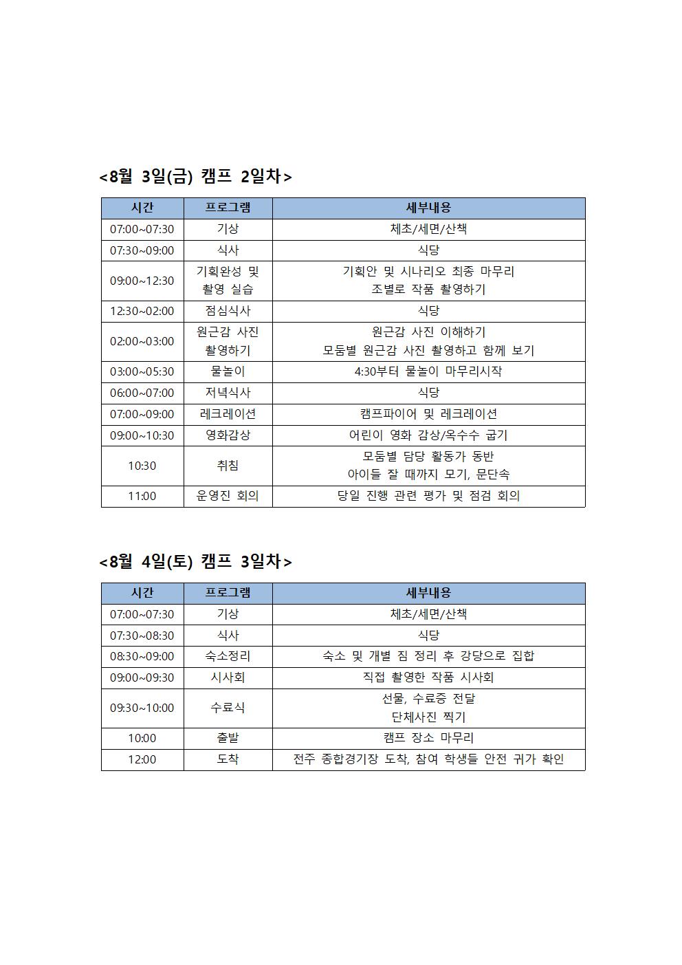 ○ 작년 캠프 진행 상황과 일정입니다. 출발 시간 등 세부 일정은 변동 가능하며 추후 안내드리겠습니다.