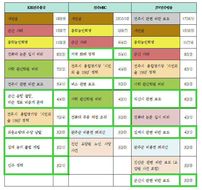 전북 지역방송 3사에서 가장 우선시한 미디어 이슈는 다음과 같다.