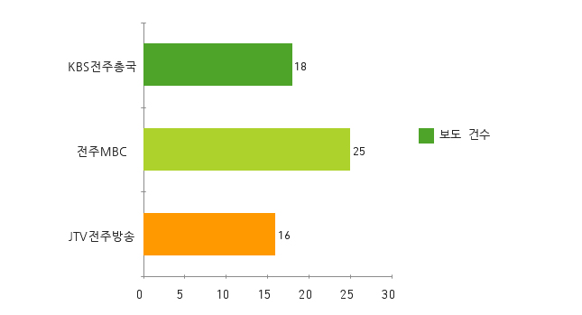 KBS전주총국 뉴스9, 전주MBC 뉴스데스크, JTV 8뉴스가 5월 1일~5월 31일까지 보도한 전체 기사 수는 1,139건이다. 리포팅 기사는 395건으로 34.7%, 단신 기사는 744건으로 65.3%다.