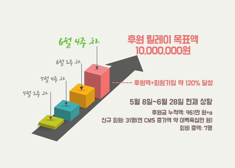 5월 8일부터 6월 28일까지의 “100인 후원 릴레이 캠페인” 상황을 최종 전달합니다!