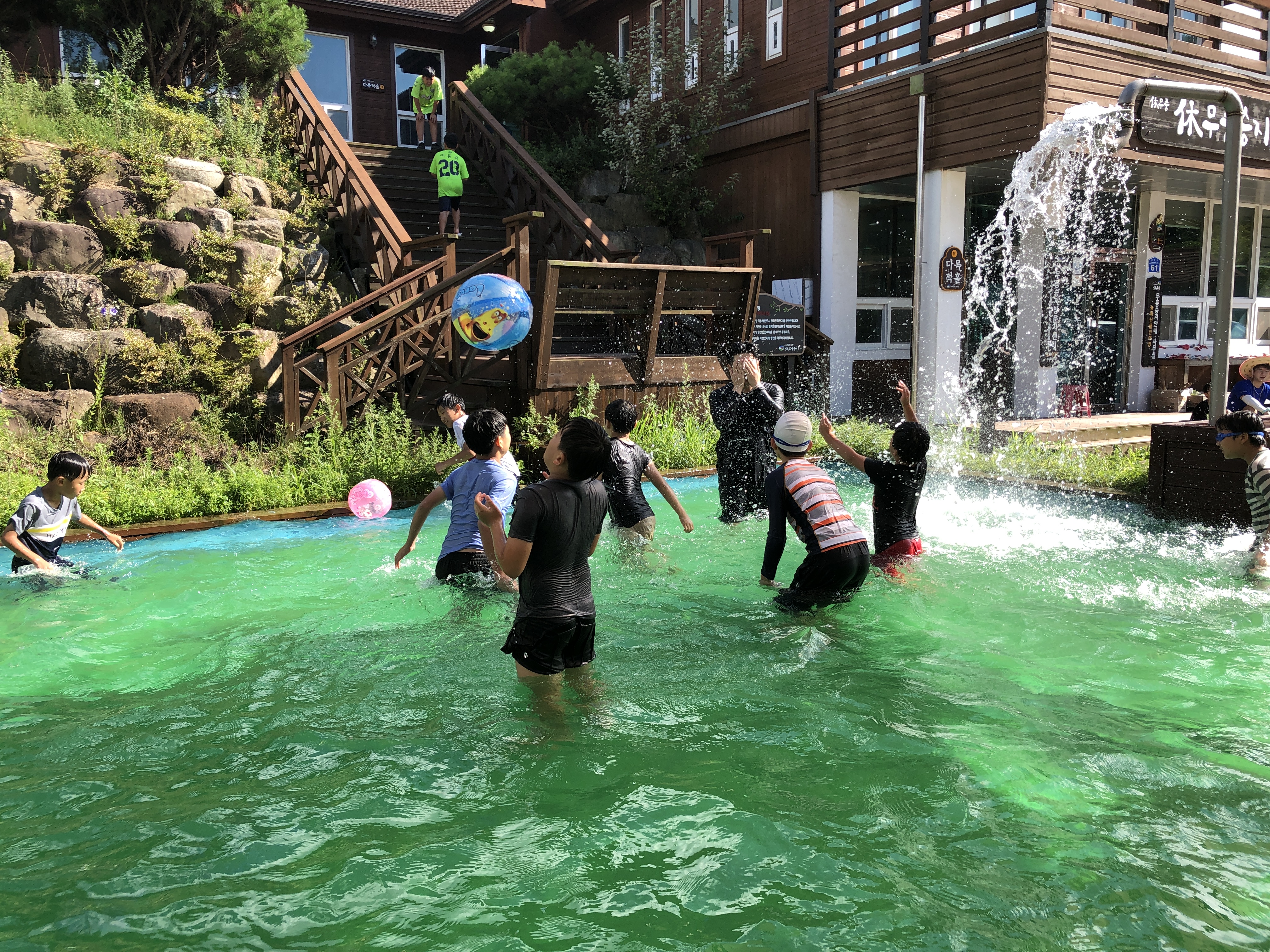 영상 촬영 후 오후에는 아이들이 제일 기대하던 물놀이!! 간식으로 수박과 바나나가 나왔네요 ㅎㅎ
