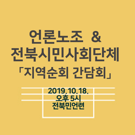 전국언론노동조합이 10월 14일부터 11월 8일까지 약 한 달 동안 전국 현장 순회 간담회를 갖고 지역 시민사회단체와 소통의 시간을 갖습니다.