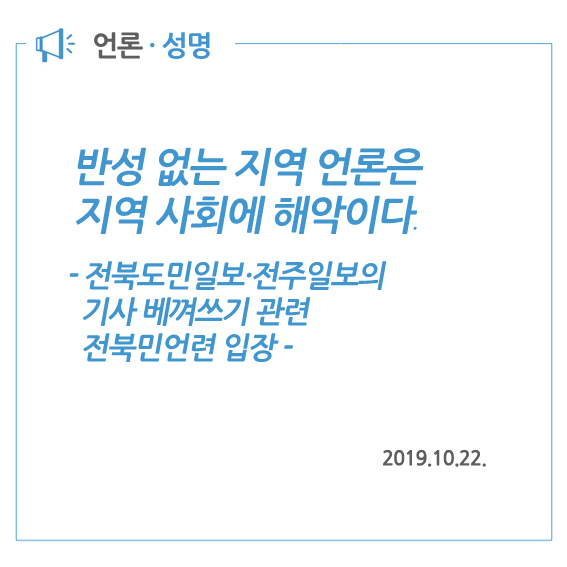 | [성명] 전북일보·전북도민일보의 민주당 공관위 심사 오보 관련 전북민언련 입장 (1) | 2020.02.20 |
