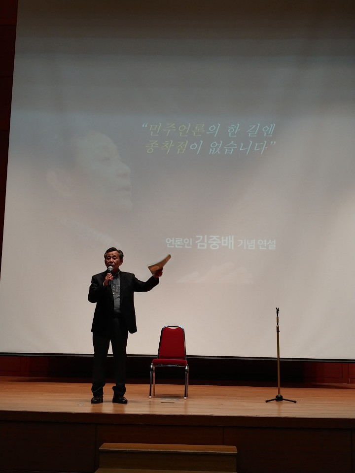 본 행사에 앞서 김중배 언론인이 "민주언론의 한 길에는 종착점이 없습니다"라는 주제로 기념 연설을 했습니다.