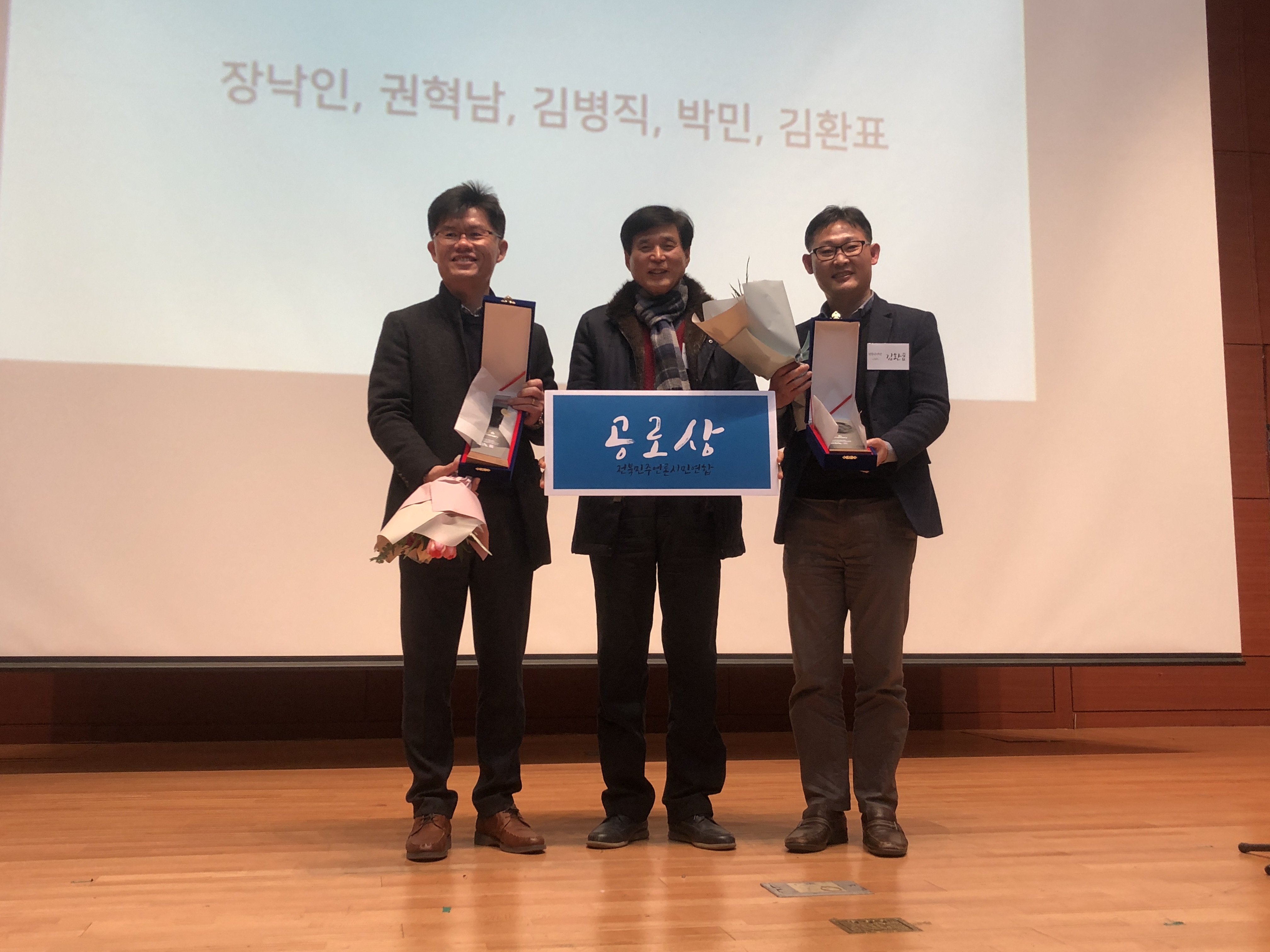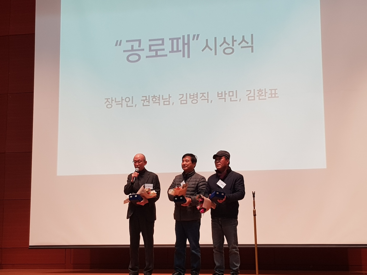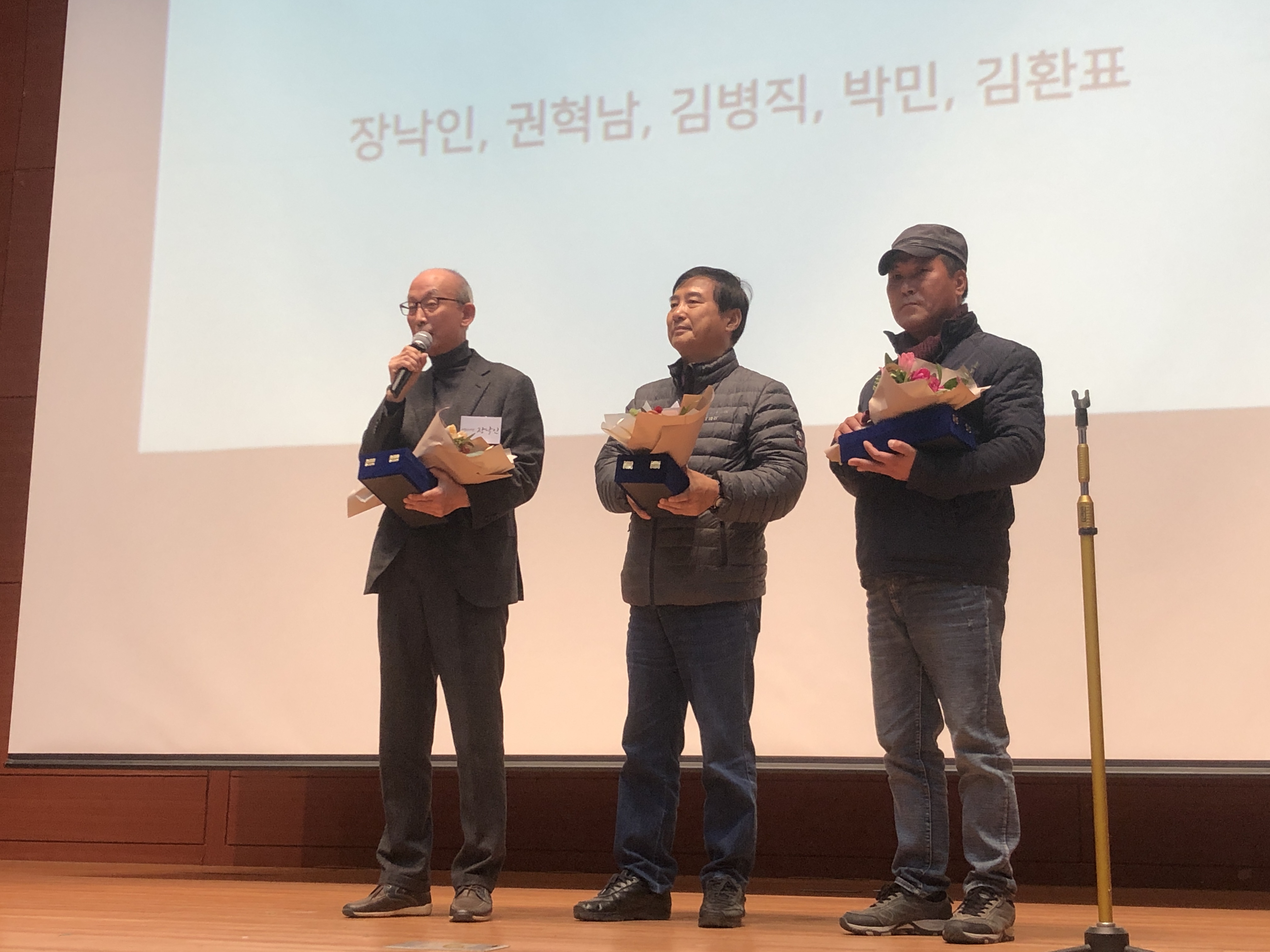 왼쪽부터 순서대로 장낙인, 권혁남, 김병직 전 대표가 공로패를 받았습니다.