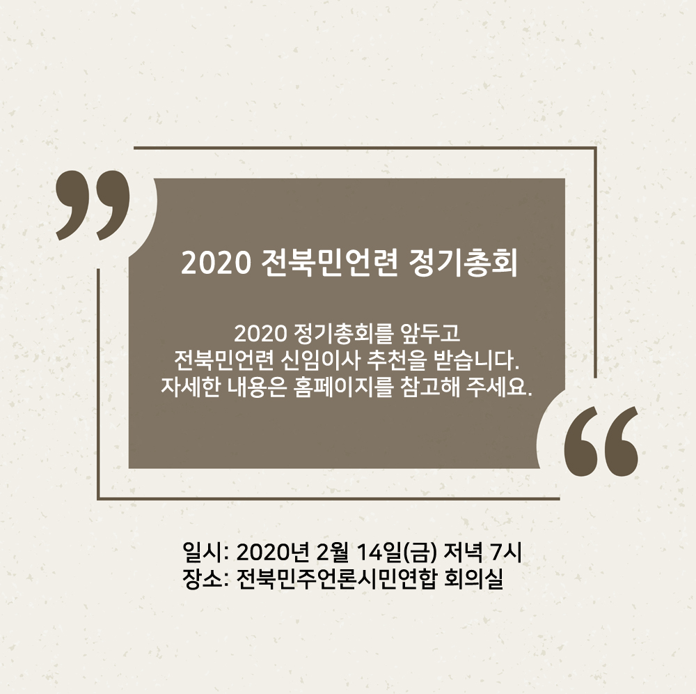 | 2020 전북민언련 정기총회 안내 (0) | 2020.01.13 |