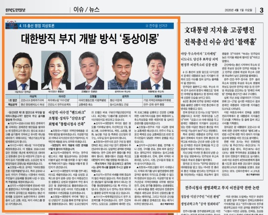 2020년 3월 30일(월) ~ 4월 3일(금) 전북일보, 전북도민일보, 전라일보 (주 5일 보도) |