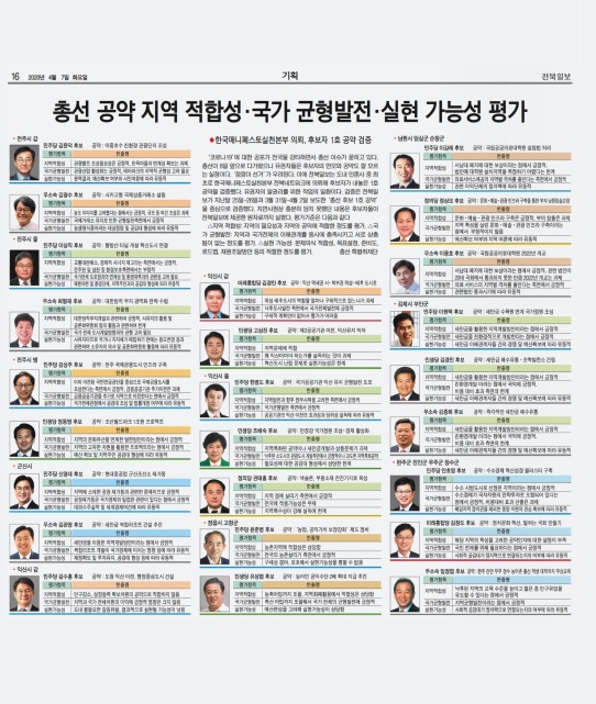 ▲전북일보 <4·15 총선 전북 후보자 1호 공약 검증>(4/7)