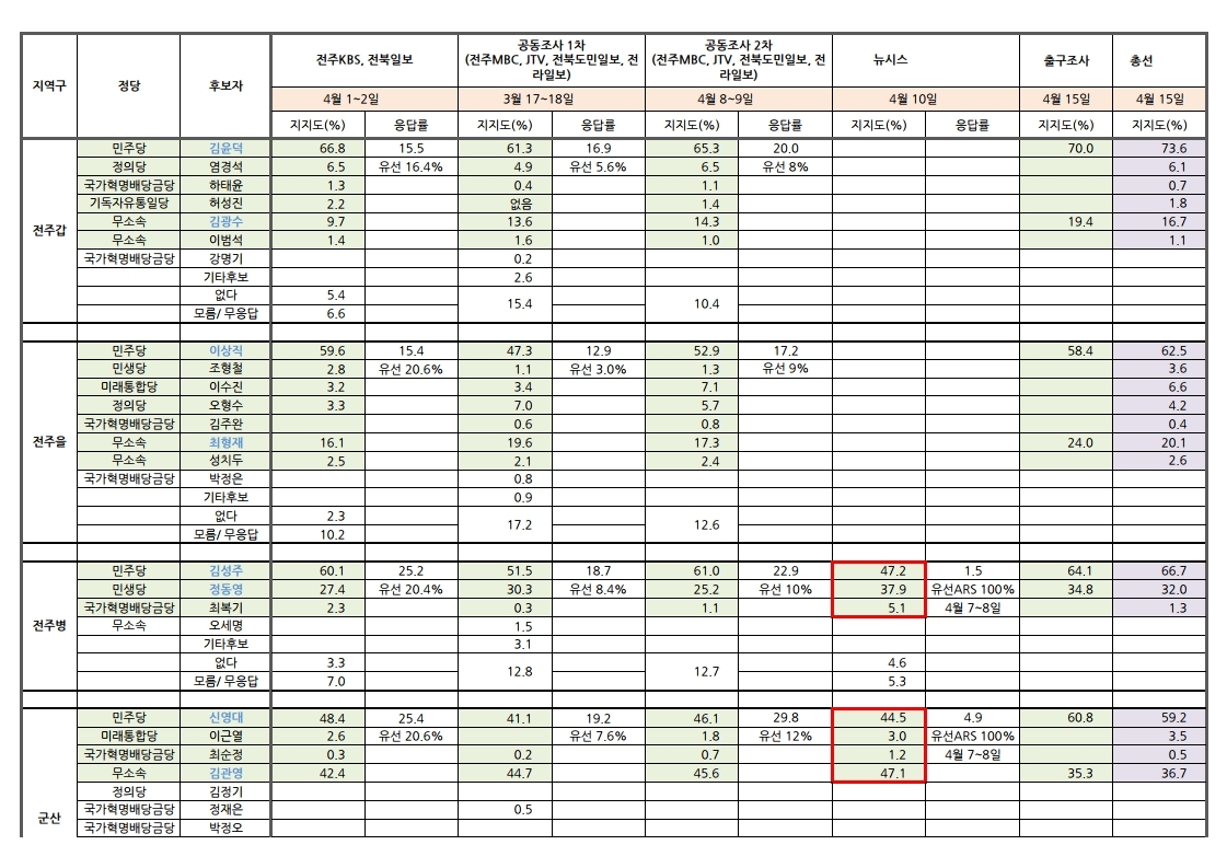 21대_총선_전북지역_선거결과/ 출구조사/ 여론조사결과 모음 통계