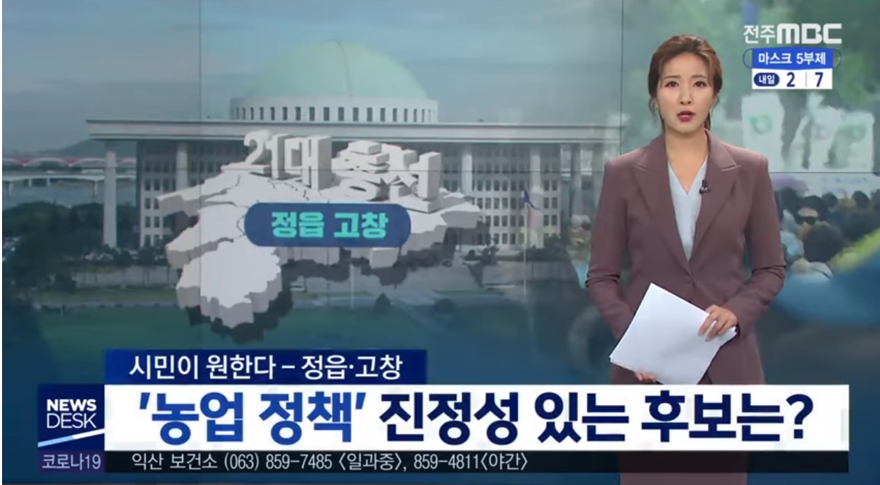 전주MBC는 <남원·임실·순창 '국립공공의대법' 해결할 적임자는 누구?>(3/24), <김제·부안 '새만금 해수유통' 후보 간 의견차>(3/25), <군산 '군산경제 회복' 적임자는>(3/26), <정읍·고창 '농업 정책' 진정성 있는 후보는?>(3/30), <전주갑 '구도심 활성화·특례시 지정' 방안은?>(3/31), <전주을 '개발'과 '공공성', 후보별 강조점은?>(4/1), <전주병 종합경기장·일자리 해법은?>(4/2), <완주·진안·무주·장수 '불법 폐기물·지역 소멸' 해결할 후보는?>(4/5)를 관련 보도했다.