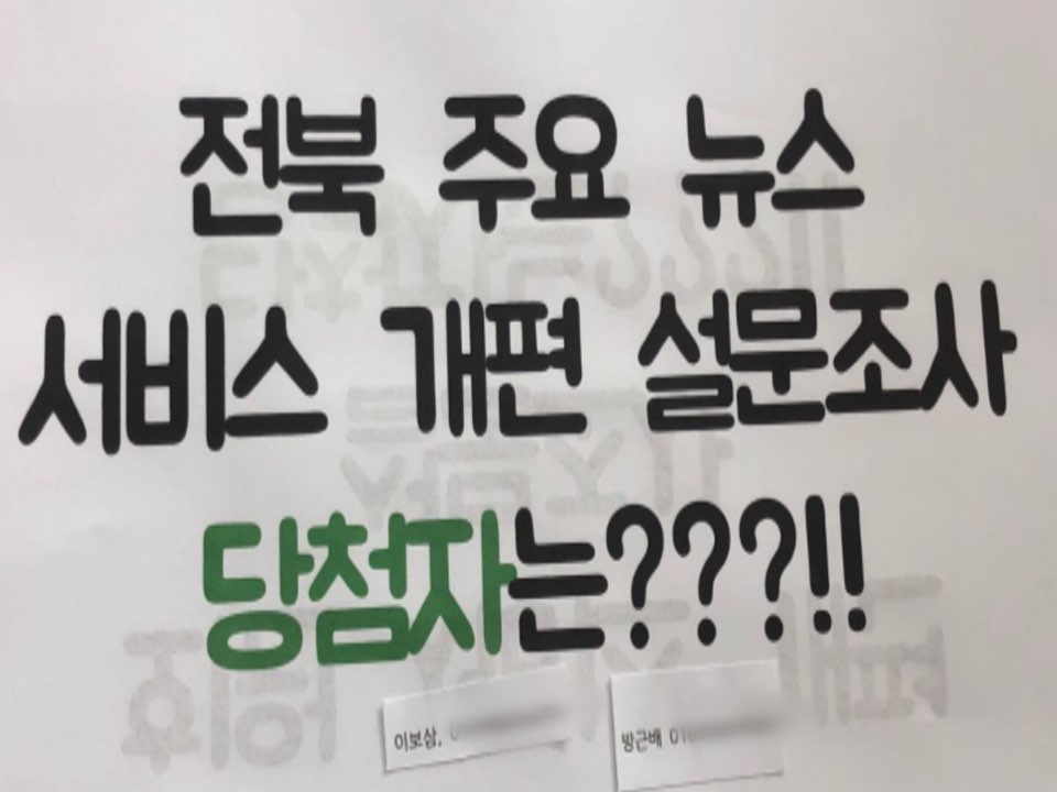 전북 주요 뉴스 서비스 개편 설문조사 당첨자는 누구일까요??