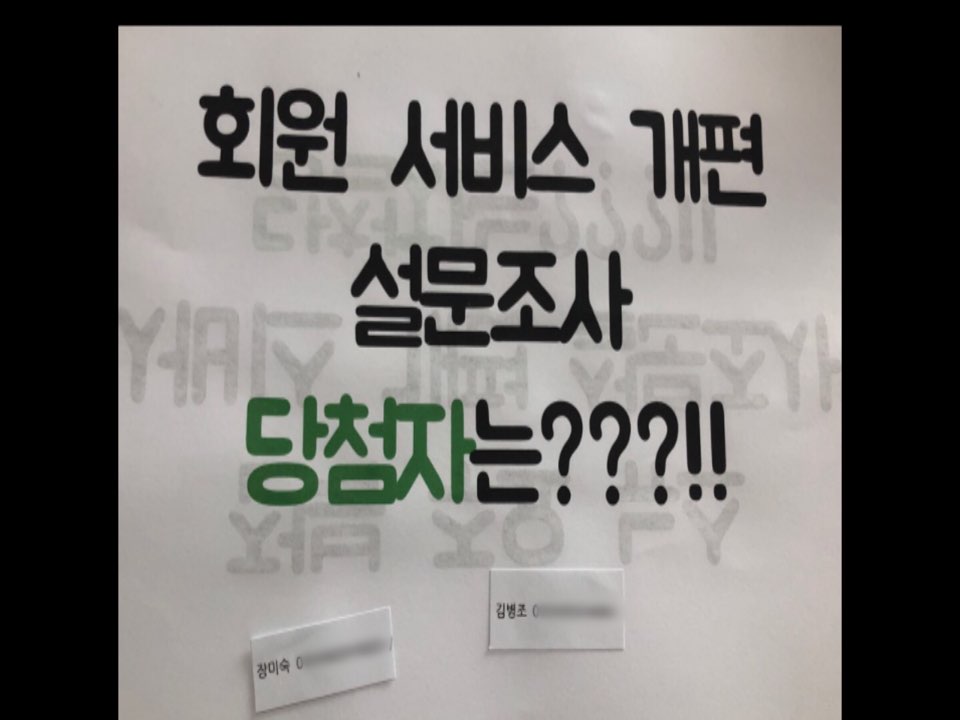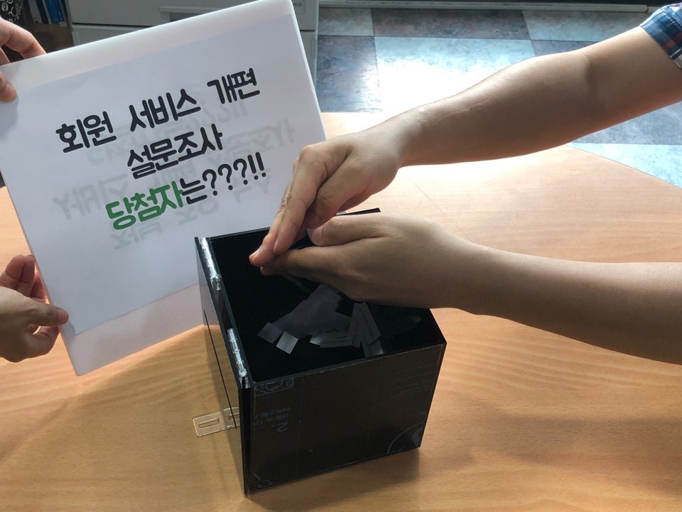 이어서 바로 회원 서비스 개편 설문조사 당첨자를 뽑았습니다.