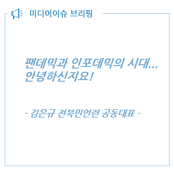 다시 한번 강조하지만 언론 개혁은 더 이상 미룰 수 없는 시대적 과제입니다. 전북민언련은 꾸준히 그 길을 갈 것입니다. 이를 위해 전북민언련의 역량이 더욱 강화되어야 합니다. 여러분의 많은 참여와 응원 부탁드립니다.