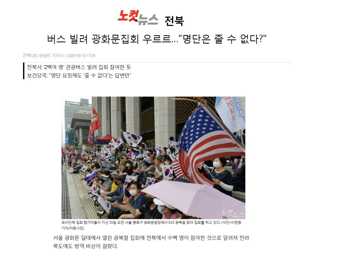 [전북CBS] 버스 빌려 광화문집회 우르르…"명단은 줄 수 없다?"(8/18, 송승민)
