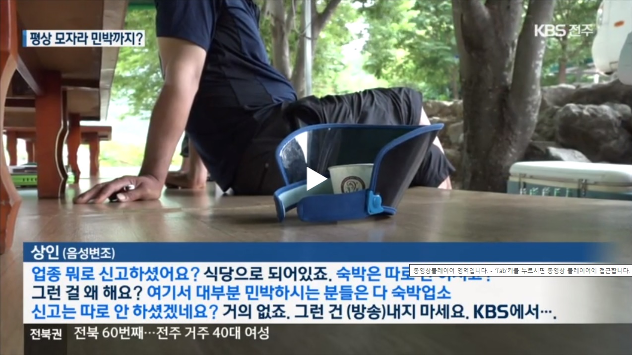 KBS전주총국은 완주와 진안의 한 계곡을 찾아 계곡에서 나타나는 불법 영업의 실태를 취재했습니다. 불법임을 알고 있음에도 영업을 강행하는 업주들과 이에 불만을 나타내는 시민들의 의견 등을 전달했는데요, 특히 음식점으로 등록을 하고 불법 숙박업까지 하는 곳이 많아 문제라고 보도했습니다. 숙박업의 경우 화재와 안전사고 우려 때문에 반드시 신고와 허가 절차가 필요하지만, 제대로 지켜지지 않고 있기 때문입니다. 기자는 문제 해결을 위해 무엇보다 지자체의 단속 등 관리가 중요하지만 실태조차 파악하지 못하고 있다고 지적했습니다.