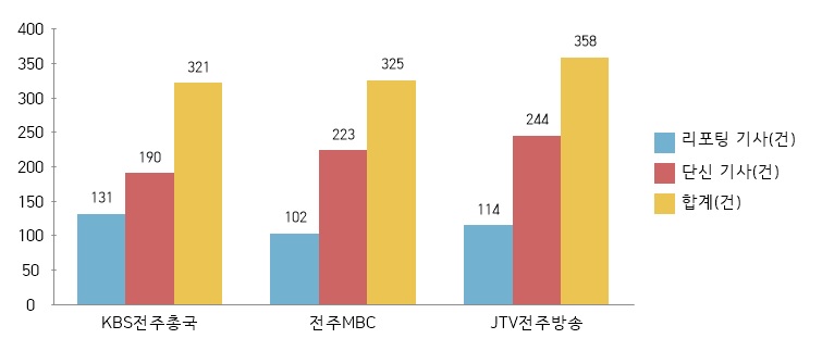 ○분석대상: KBS전주총국 뉴스9, 전주MBC 뉴스데스크, JTV 8뉴스