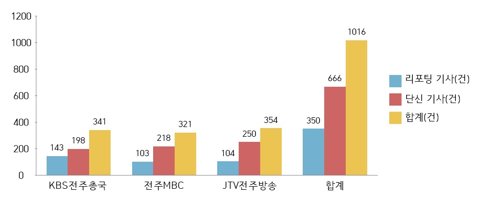 ○분석대상: KBS전주총국 뉴스9, 전주MBC 뉴스데스크, JTV 8뉴스