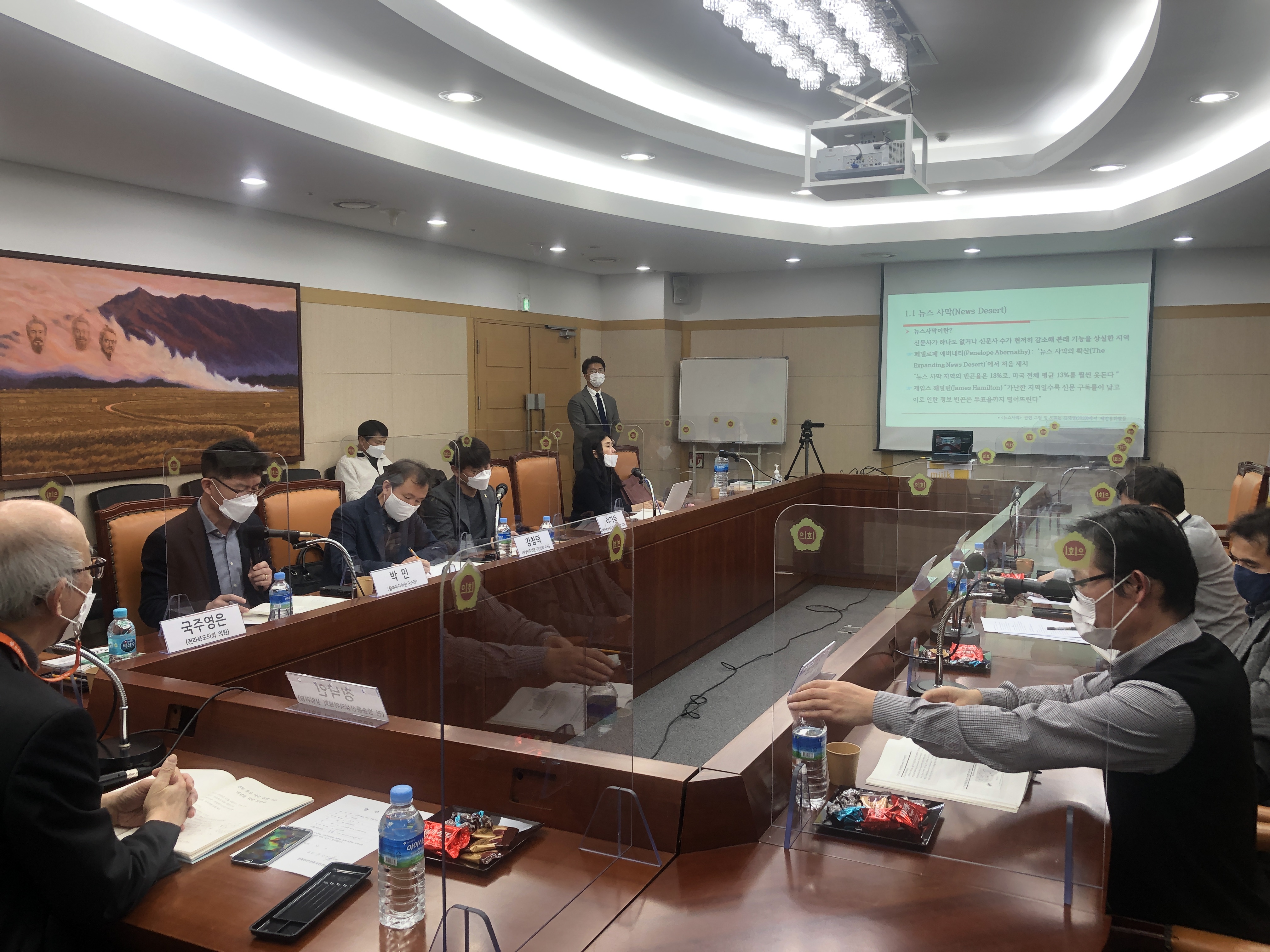 학계나 시민사회 같은 경우에는 어떻든 계속 하자라고 하는 제안들을 좀 해왔었던거고, 물론 언론노조 차원에서도 그 부분과 관련해서는 동의하고 공감을 하는 부분이지만 실제 이것들을 실행하는 과정에서는 적극성을 보이지 않고 있는 것들이 현실이거든요, 그렇게 따지면 구체적으로 이걸 좀 실행을 할려면 무엇보다 언론 현업에 있는 분들이 언론노조를 비롯해서 뭐 기자협회도 그렇고 이런 분 현업에 계신 분들이 더 적극적으로 좀 이 논의에 좀 나와야 되고 거기에서 경영진들까지도 같이 움직일 수 있게끔 그런 환경들을 같이 만들 필요가 있겠다는 생각을 합니다.