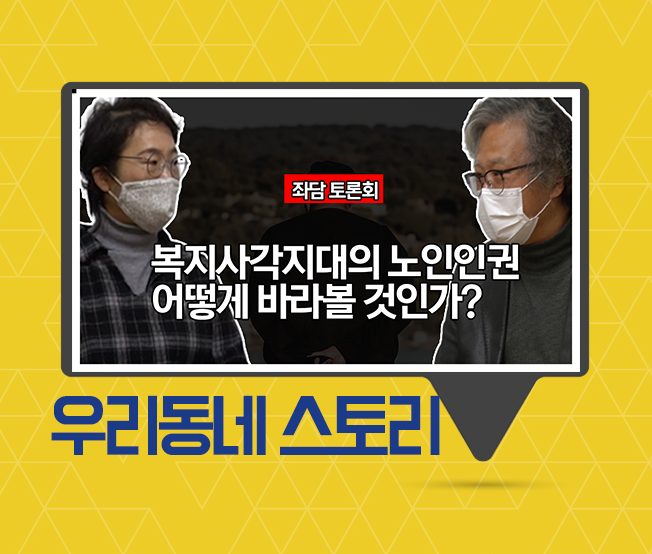 복지사각지대에 놓여 있는 노인인권 단순히 집에만 계시고 나오지 마시라는 것이 노인을 위한 태도일까요? 또 사회를 은퇴한 65세 이후의 노인 삶은 어떤 삶은 살아가야 하나요? 그에 대한 좌담 토론회가 열렸습니다.