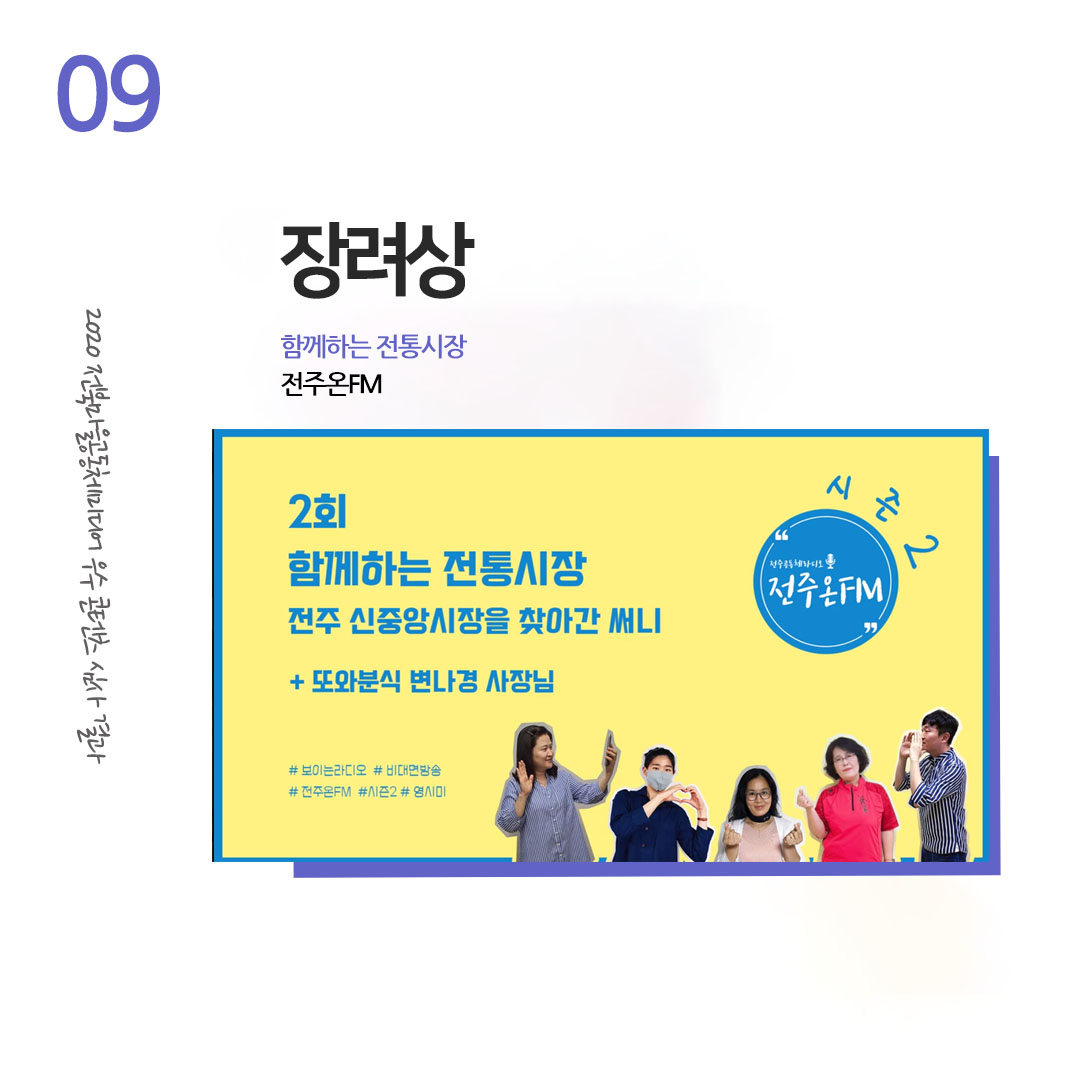 [공모] 2020 전북 마을공동체미디어 우수 콘텐츠 공모전 안내 - 마감, 결과발표 12월 23일(수), 오후 2시 (0) | 2020.12.10 |