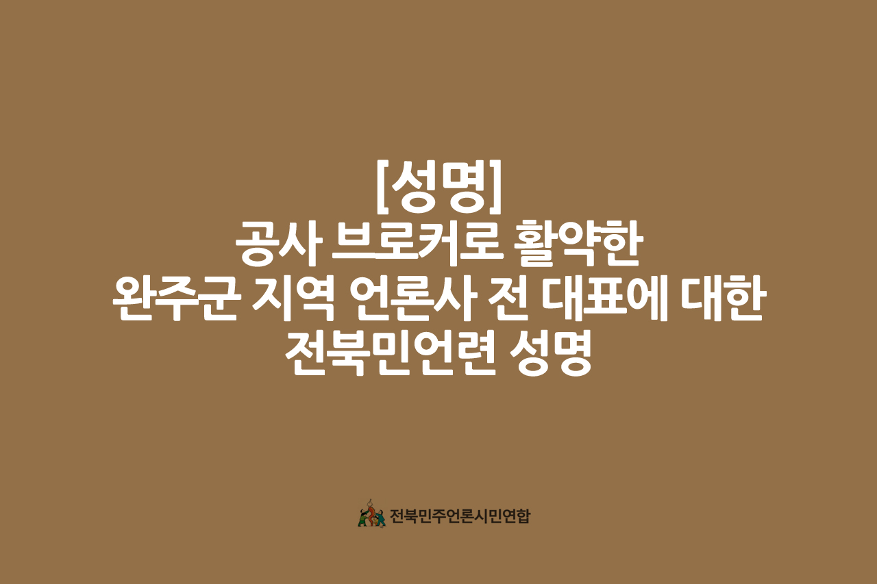 지역 사회에도 촉구한다. 이권개입을 비롯한 사이비 언론행위에 단호하게 대응해야 한다. 우리는 이번 사건이 완주군 지역 언론만의 문제라고 보지 않는다. 홍보예산 집행기준 개혁을 비롯해 사이비 언론행위를 근절하는 계기가 되기를 바란다.