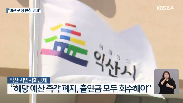 KBS전주총국은 출연을 통해 직원의 애경사를 챙기는 지자체는 전국적으로 익산시가 유일하다고 지적하며, 행정안전부가 지자체 공무원 노조를 출연 가능한 공공기관으로 보기 어렵다고 판단한 유권 해석 내용을 보도했습니다. 조례상 근거도 없어 10년 가까이 편성한 익산시의 관련 예산이 위법이라는 겁니다.