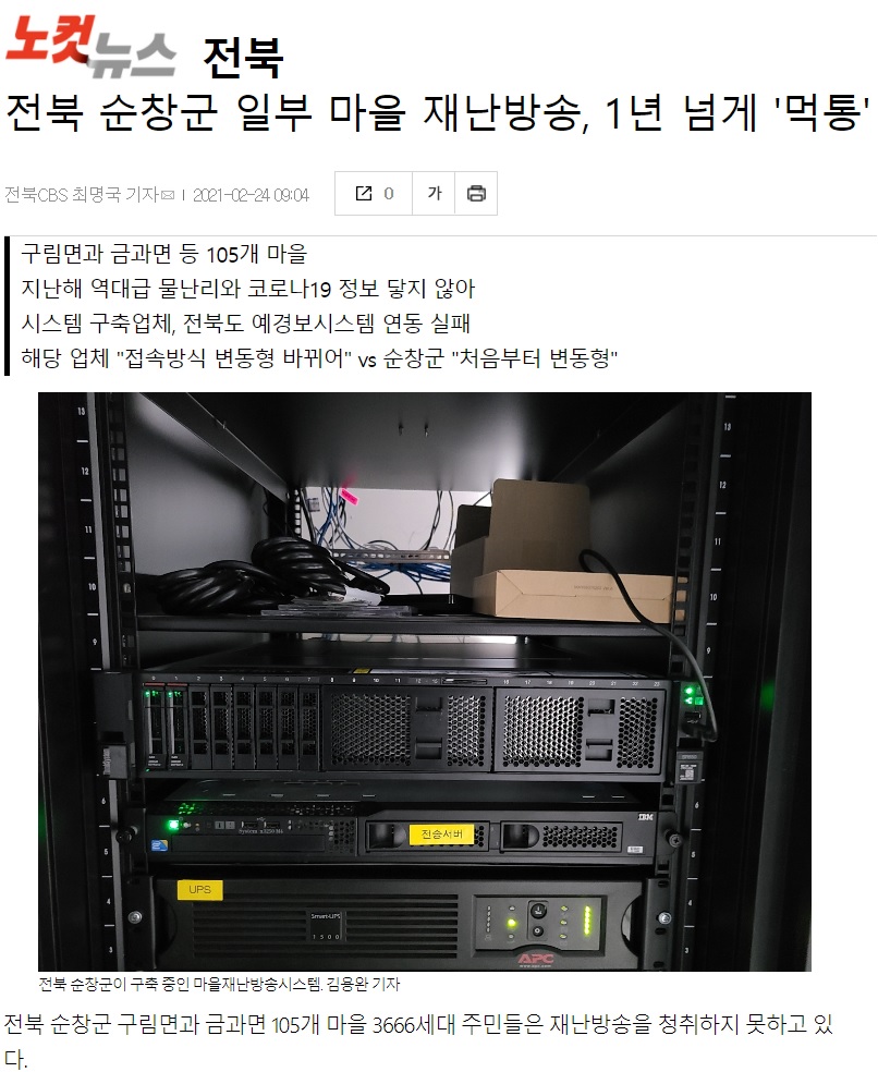 [전북CBS 노컷뉴스] 전북 순창군 일부 마을 재난방송, 1년 넘게 '먹통'(2/24, 최명국)