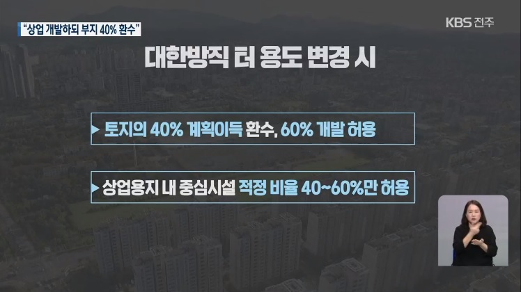 [KBS전주총국] "옛 대한방직 터 상업 개발 허용… 40% 환수조건"(2/25, 이수진)