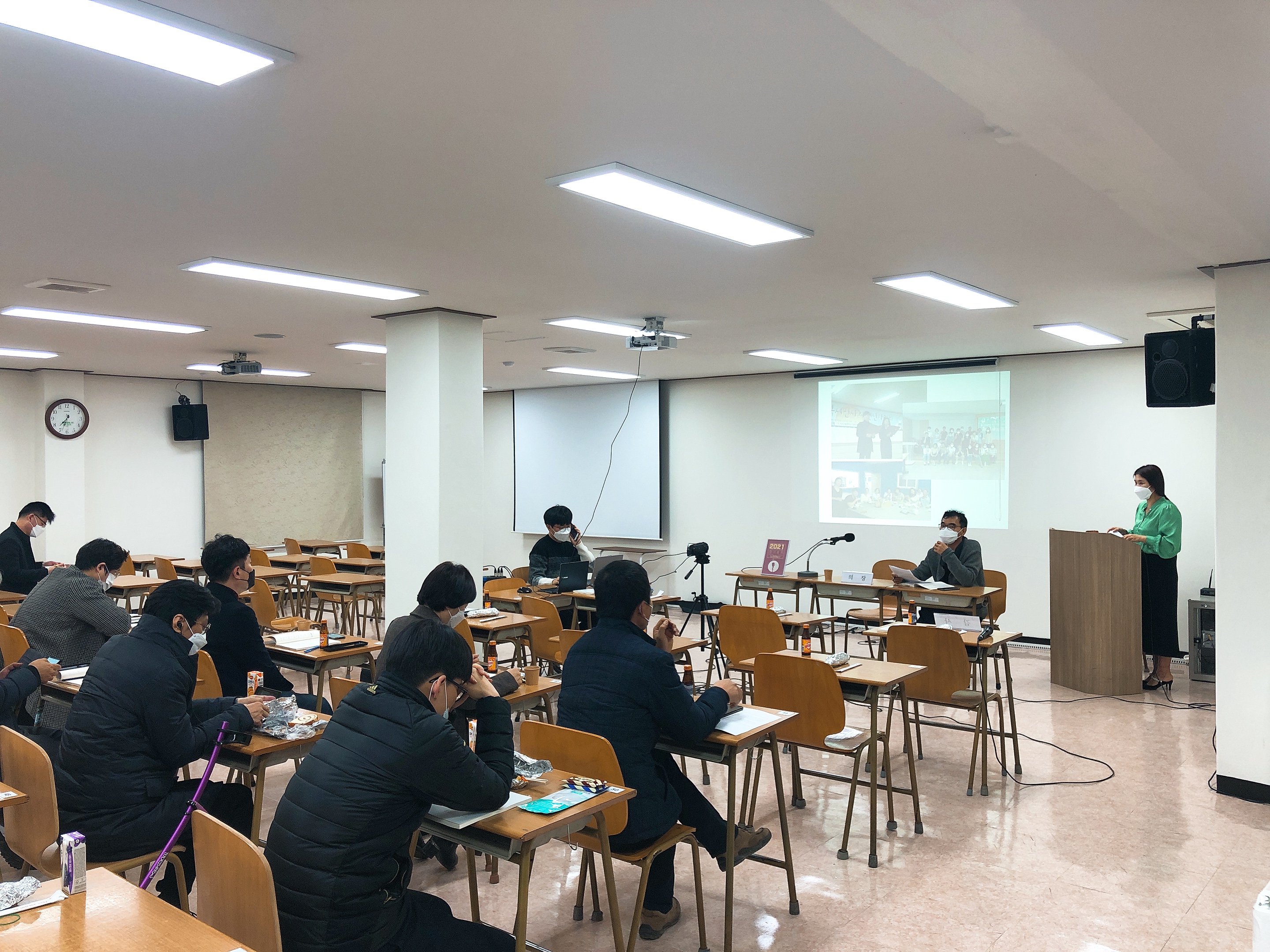 2021년 정기총회는 코로나19 안전수칙을 지키고자 전북민언련 회의실이 아닌 솔내문화복지관(송천동)에서 진행되었습니다. 연대활동을 하는 송천동마을신문에서 회의실을 쓸 수 있게 애써주셨어요^^