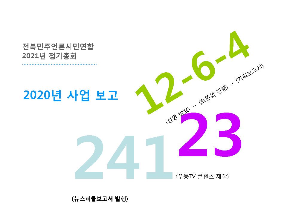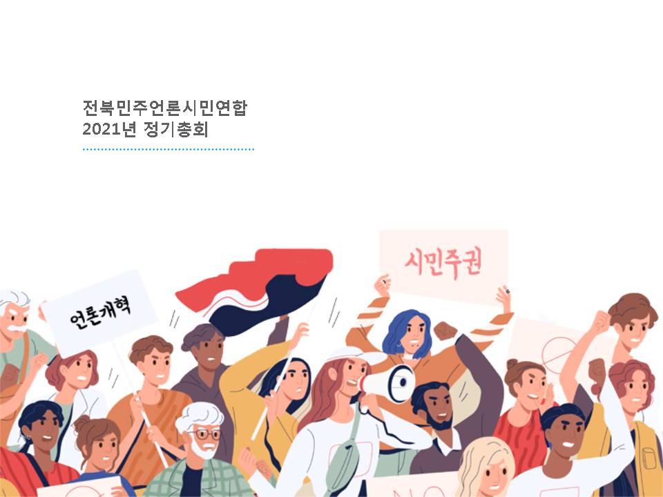 전북민언련은 언론의 보도 침묵, 왜곡과 싸우고, 시민을 위한 언론, 변화된 사회를 만들고자 2021년에도 활동 목표를 잡았습니다. 코로나19로 인해 이사회 위임으로 진행되어 아쉽게도 많은 회원들을 모시지 못했어요. 하지만 사전에 안건을 공개해 회원들에게 온라인을 통해 의견을 받았고 유튜브 생중계를 통해 참여하실 수 있도록 공간을 열어두었어요.