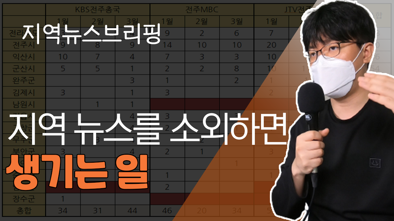 전주, 익산, 군산은 지역 방송 3사가 잘 다뤄주는 반면, 남원, 임실, 장수 등은 상대적으로 찾아보기 쉽지 않은 것으로 나타났습니다. 이럴 경우 나타날 수 있는 것들을 정리하여 드립니다.