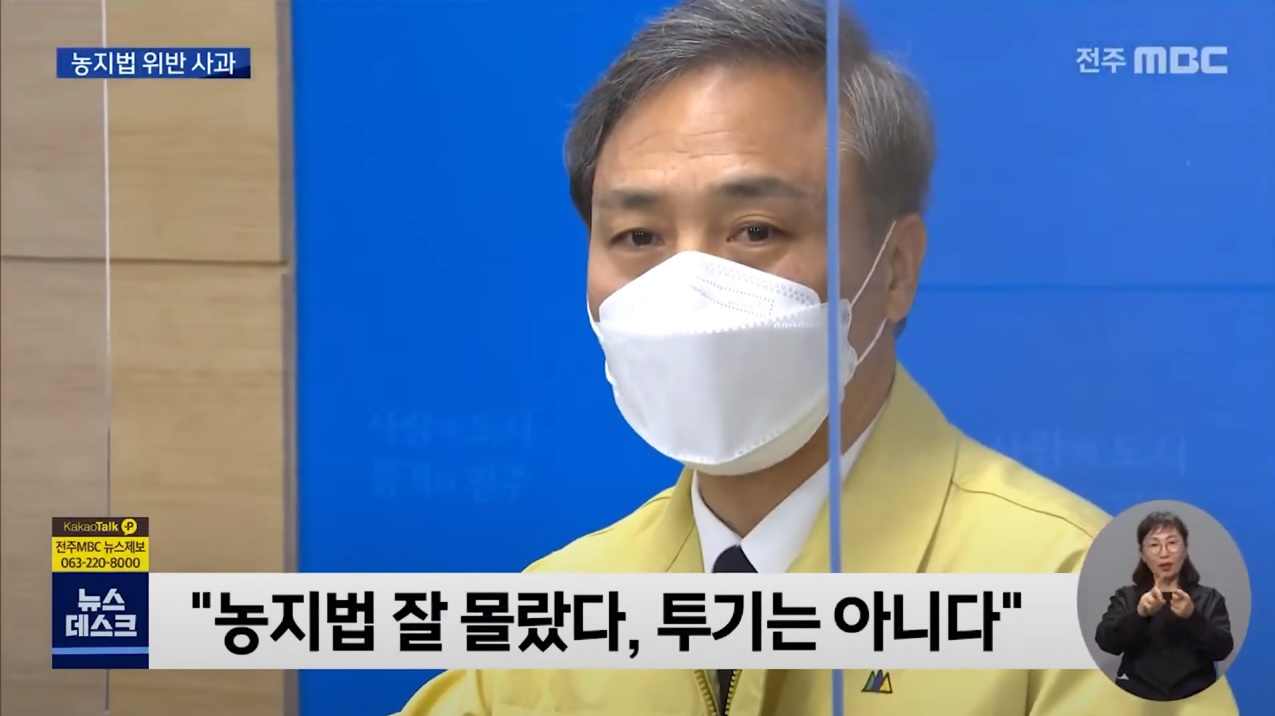 내부정보를 이용한 LH 직원의 투기 의혹으로 부동산 투기에 대한 경계심이 높아졌습니다. 정치인들도 예외가 아닌데, 지난 9일 전주MBC는 김승수 전주시장의 부인이 농사를 짓지 않는데도, 농지를 소유하고 있어 투기 목적이 아니냐는 의혹을 보도했습니다. 김승수 시장이 직접 전주시의 부동산 투기를 근절하겠다고 외친만큼 그 충격이 컸는데요, 지난 19일 부인의 농지법 위반 사실을 인정하며 사과했습니다. 다만 부동산 투기 목적은 없었다고 밝혔습니다.