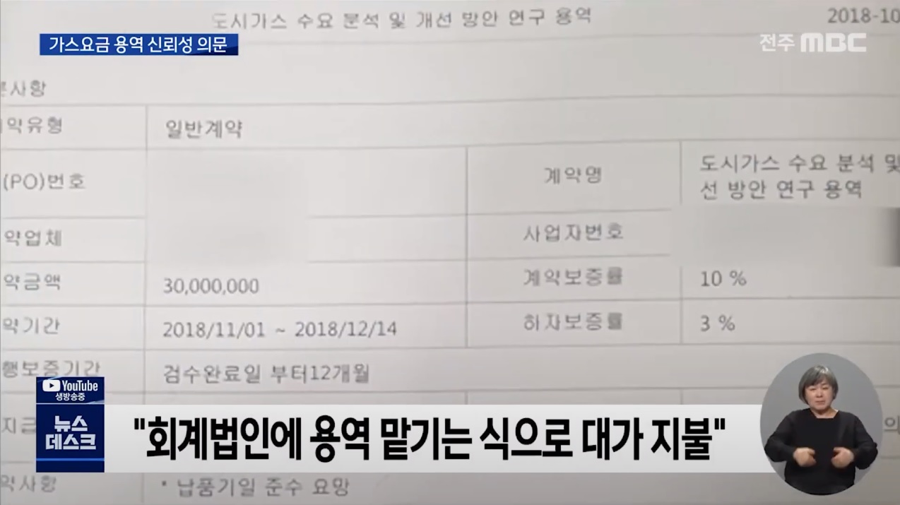 후보 1. 전라북도 도시가스 요금 부풀리기 유착 의혹, 독점 구조 문제점 지적
