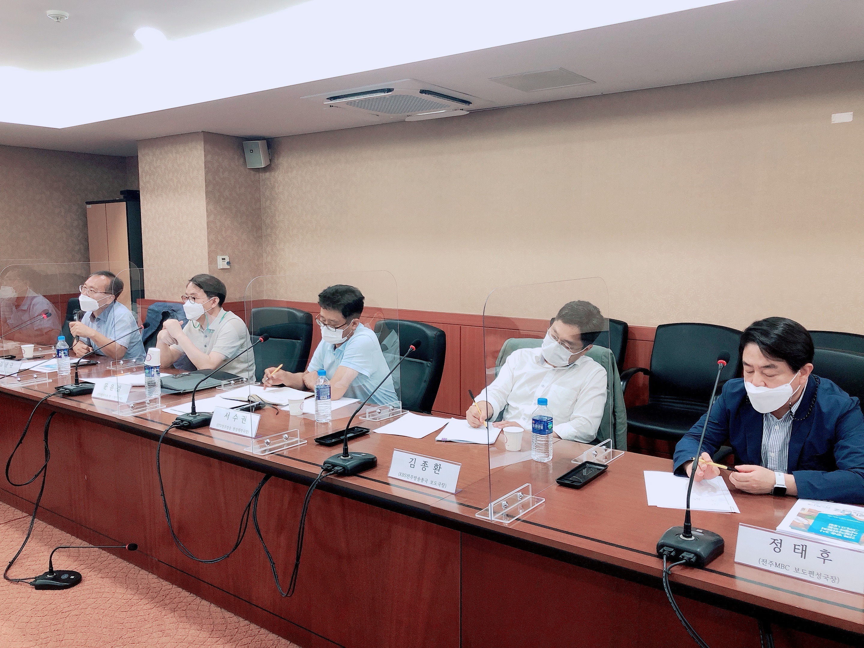 손주화 전북민언련 사무처장은 2020년-2021년 전북 지상파 방송 3사의 시청자위원회 현황을 분석하며 달라진 지점을 발제했고, 각 사에서 모신 시청자위원들은 현 위원의 위치에서 각 사에서 바뀌어야 할 지점과 변화 방향에 대한 제안을 했으며 이에 방송 3사에서 오신 보도 편성국장님들은 개선을 약속했습니다.