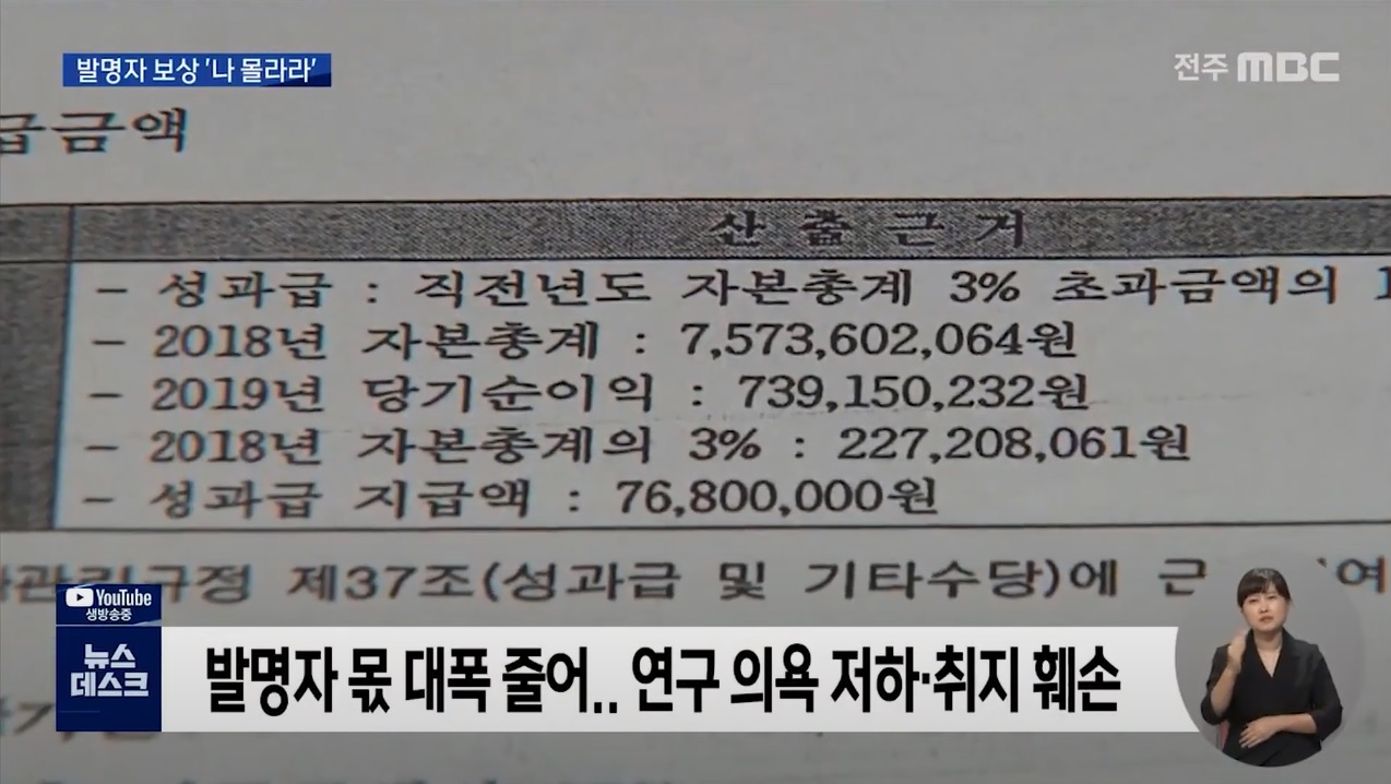 [전주MBC] '발명자 외면' 대학기술지주, 직원 성과급은 두둑?(7/22, 조수영)