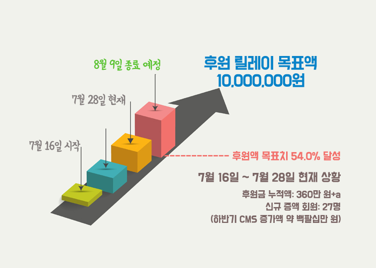 2021년 릴레이는 8월 9일 마무리할 예정이며 현재 후원금 목표액 1000만 원에서 54% 정도 목표치를 달성했습니다.