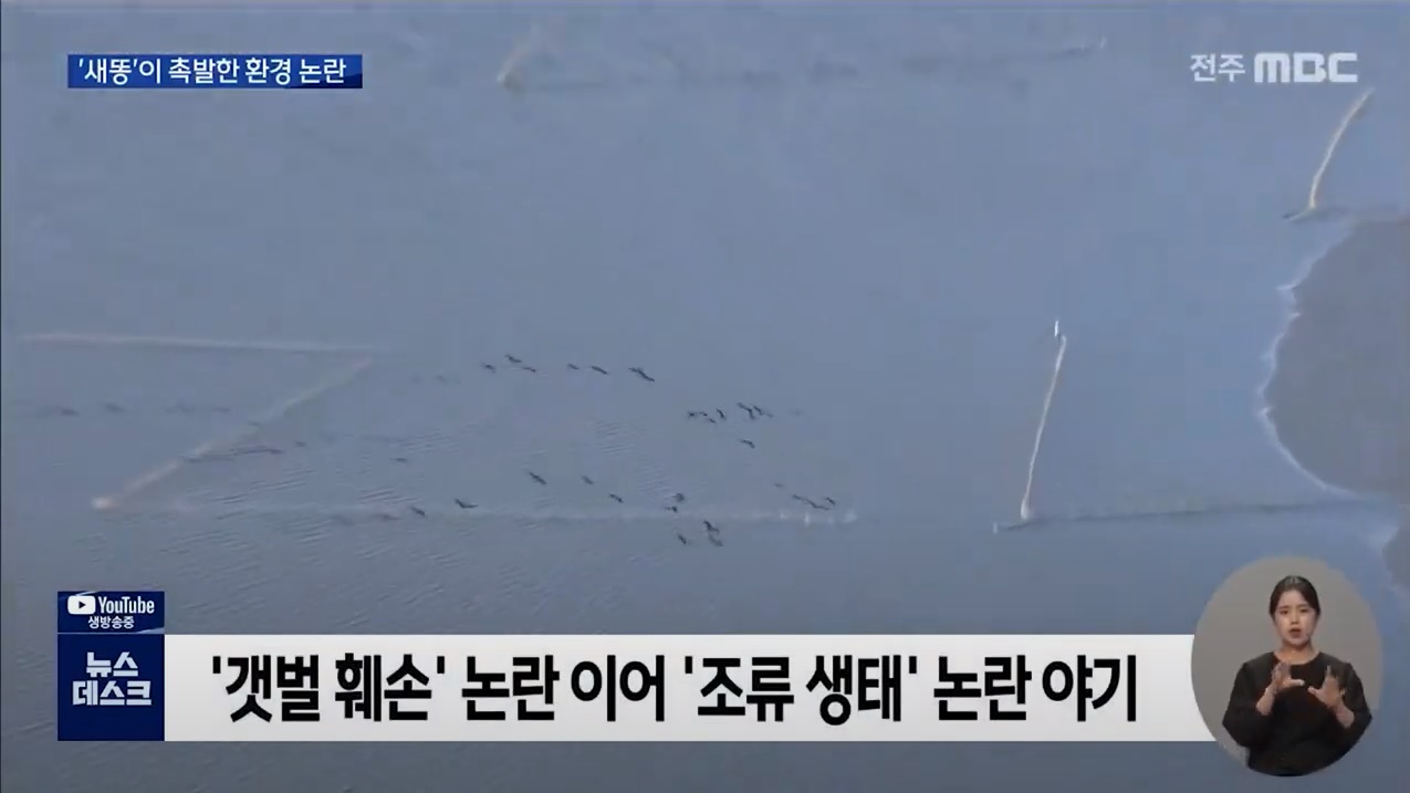 전주MBC 또한 10일 보도에서 “새를 쫓아내는 게 친환경?”이라는 의문을 던졌습니다. “새 방지 대책은 갯벌 훼손에 이어 원래 서식하던 새까지 적으로 내몬다는 비난을 야기할 수 있어 조심스럽다.”라는 겁니다. 기자는 “갯벌을 단순한 유휴지로 보고 토목공사처럼 추진된 수상 태양광 사업의 모순이 노출된 것 아니냐는 지적도 불가피하다.”라고 덧붙였습니다.