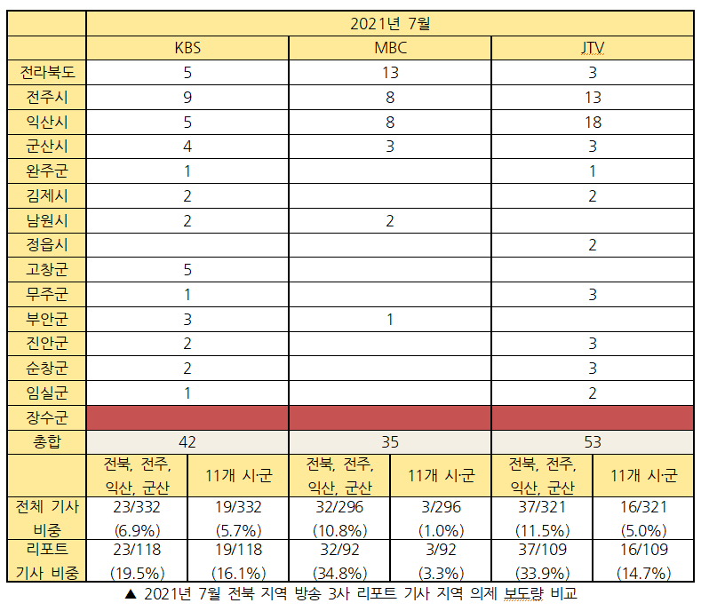 <2021년 7월 전북 방송 3사 시군 의제 보도 실태 보고서>