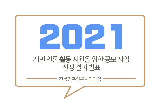 전북민주언론시민연합에서는 전북 지역 내 다양한 저널리즘 활동을 목표로 하는 주민과 단체의 활동을 적극 독려하고 언론 개혁을 위한 목소리들이 지속될 수 있는 활동을 지원하고자 2021년 『2021년 시민 언론 활동 지원을 위한 공모 사업』을 시작하게 되었습니다. 공모사업은 시민동호회 지원 활동 3곳, 지정 주제토론회 지원 3곳으로 6곳에 총 1,000만 원을 지원하는 형태로 되어 있습니다.
