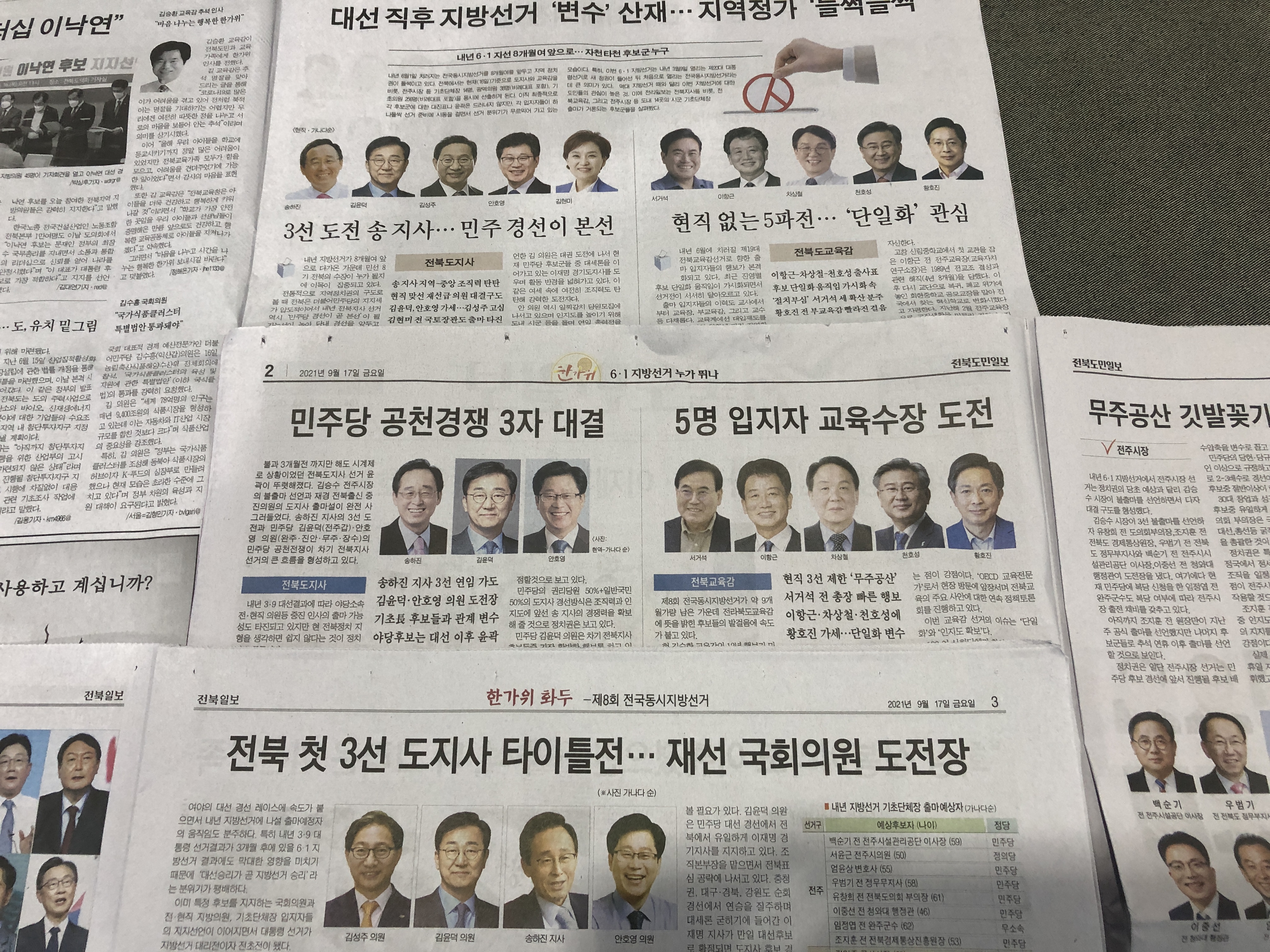 이렇게 어제와 오늘 도내 고위 공직자들의 비리 의혹 보도가 이어졌는데요, 오늘 자 전북일보, 전북도민일보, 전라일보 등 도내 일간지 보도를 살펴봤더니 관련 보도를 찾아볼 수 없었습니다. 대신 세 일간지 모두 추석 특집으로 내년 지방선거 출마 예상자와 전망을 살펴보는 기획 보도에 상당 수 지면을 할애했습니다. 내년 대선과 지방선거 관련 소식도 중요한 내용이긴 하지만 지금 일어나고 있는 일을 외면하면서 다뤘어야 하는지는 의문입니다. 지역 일간지들이 공직자의 비리를 감시하고 드러내기보다 엉뚱한 곳에만 신경 쓰고 있다는 비판을 피하기 어려워 보입니다.