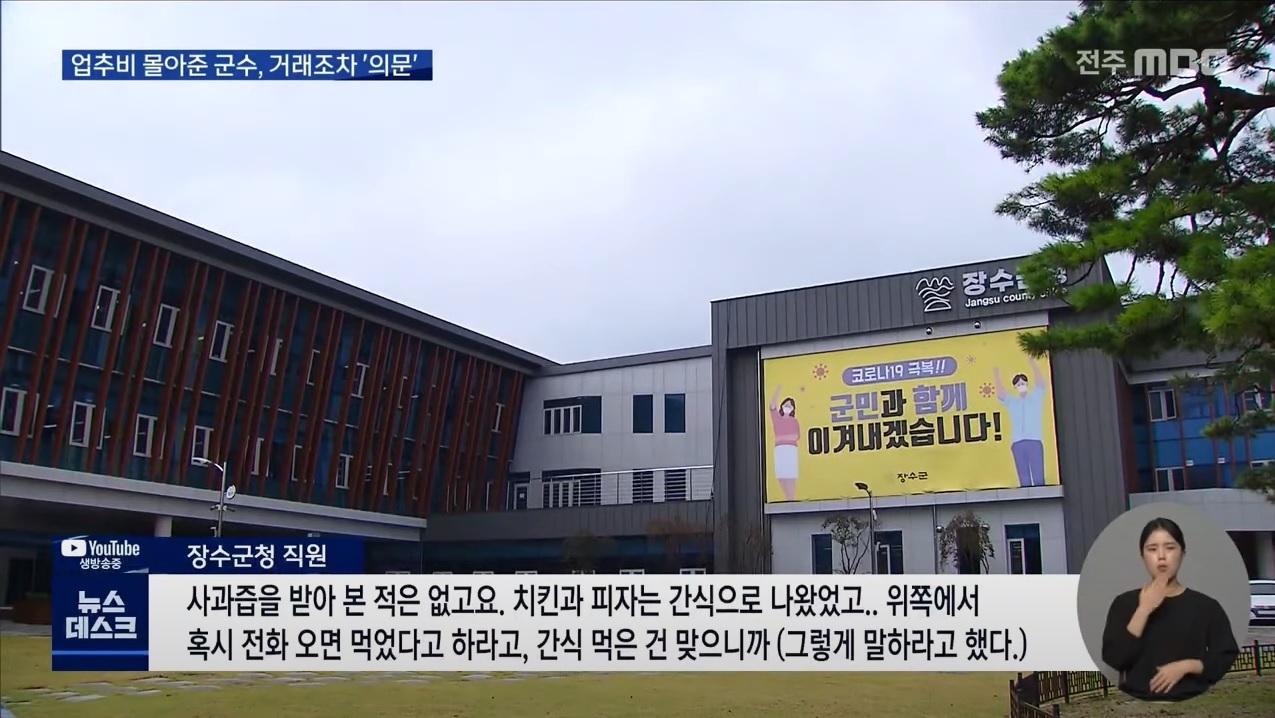 그러나 전주MBC는 “장영수 군수는 취임 이후 8달 동안 이사직을 유지했고, 이사직을 사임한 직후인 2019년 7월부터 짜 맞춘 듯 군수 업무추진비로 구매가 시작됐다.”라며 의문을 제기했습니다.